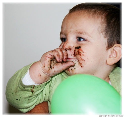 It looks like a wonderful party! His caterpillar cake is so cute, and the photos are great. His smiles say it all. What precious cake face! (That balloon photo is pretty cool too.)