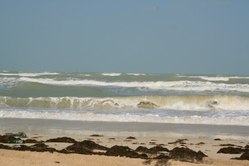 I really wanted to take my mom camping and we thought this past weekend the perfect time, as it was Gideon's off Saturday, which meant that we could leave Friday arvie, sleep over and come back Saturday round about lunch time. Or so we thought, on Wednesday Gideon said he heard on the radio something about and impending sandstorm, we checked on the local paper's web site and sure enough, high winds, low temperatures and a specific note that any outdoor activities would be highly unpleasant. We decided to not tempt mother nature and decided not to go, a bit disappointing none the less. However, we were not going to miss anything so decided to drive to the beach, to get a look at the rough seas and high winds ... The wind was unpleasant enough, but you have to giggle at the high seas, though in fairness, this really is quite rough by UAE standards, it usually looks like a dam: