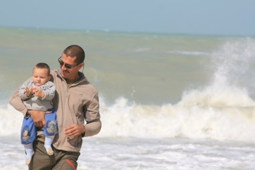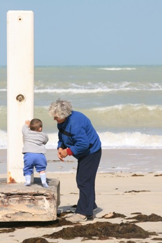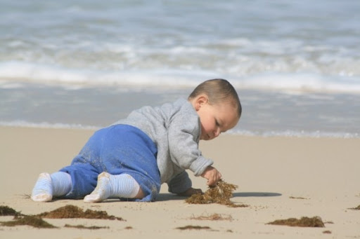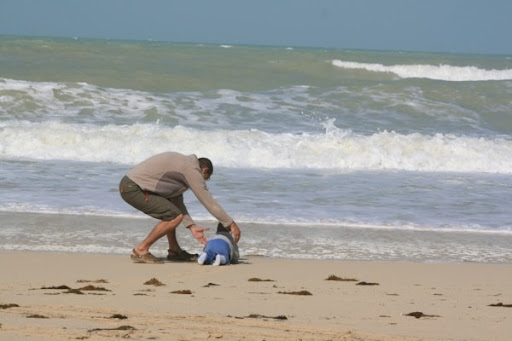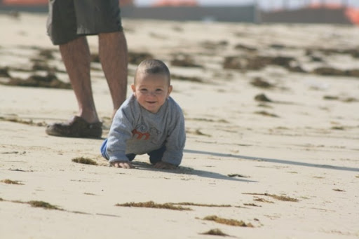 and for some bizarre reason his daddy wouldn't let him crawl right into the ocean LOL!!! (ok, it's a good reason, I didn't pack any dry clothes, K-man doesn't actually care or understand, LOL!!)