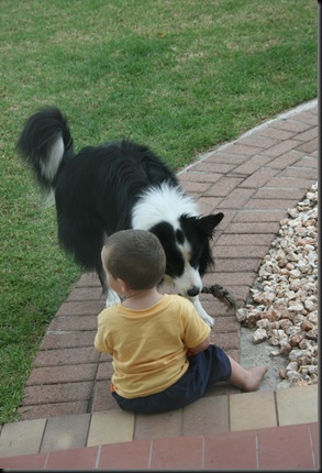 and back in Gauteng, visiting with my sister Dalene and her family, this would be her children playing with Kaydin, their dad eventually said to them: "now remember, he's not a barbie doll, put-him-DOWN!" LOL!!